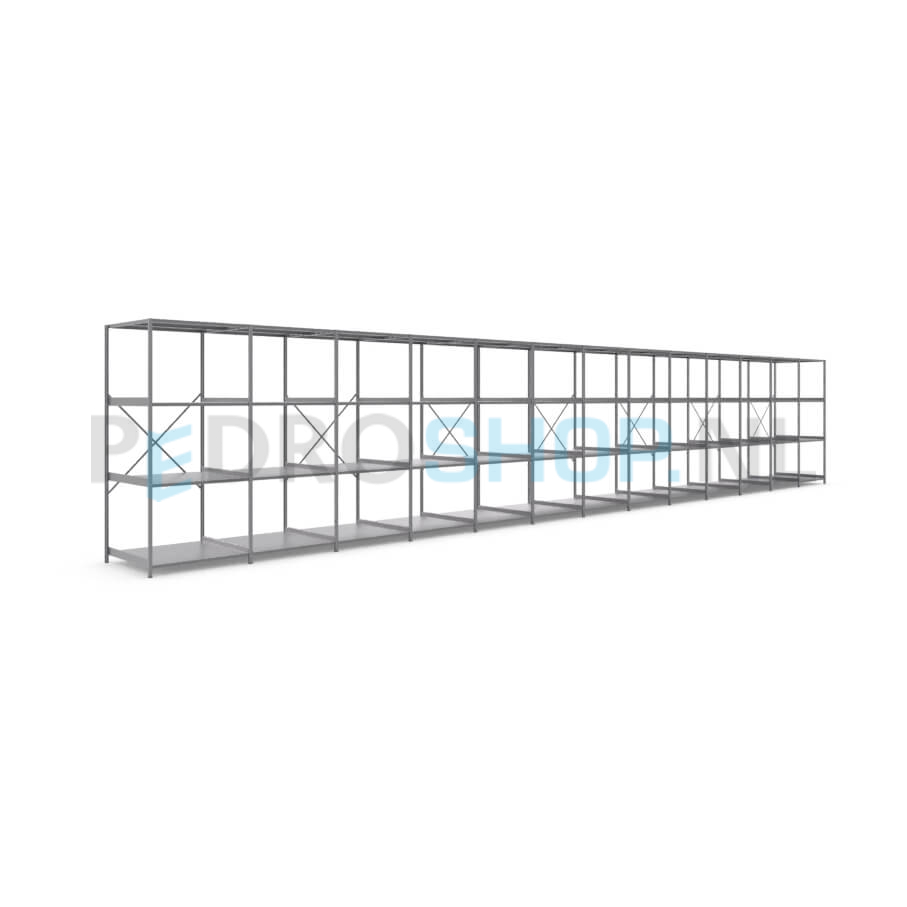 Metalen stellingkast: 230cm (h) x 100cm (d) x 1311.4cm (l)
