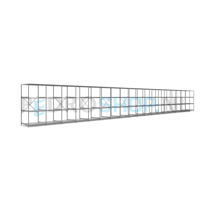 Metalen stellingkast: 230cm (h) x 100cm (d) x 1915cm (l)