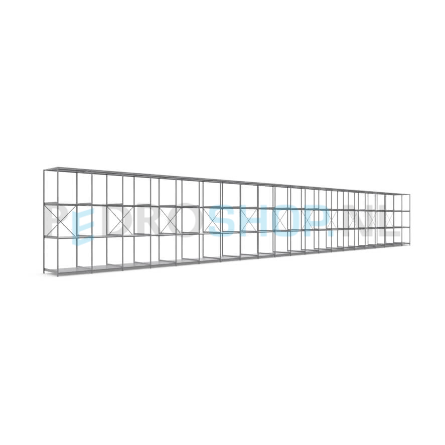 Metalen stellingkast: 300cm (h) x 100cm (d) x 2116.2cm (l)