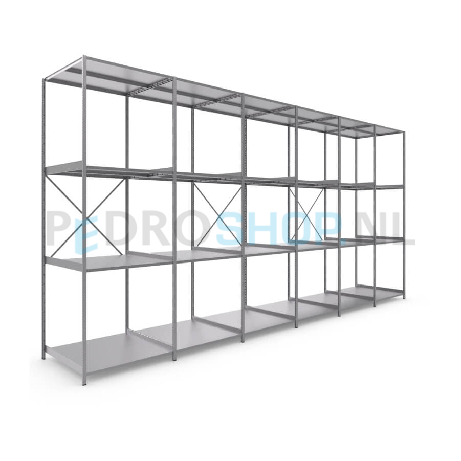 Metalen stellingkast: 300cm (h) x 100cm (d) x 607.2cm (l)