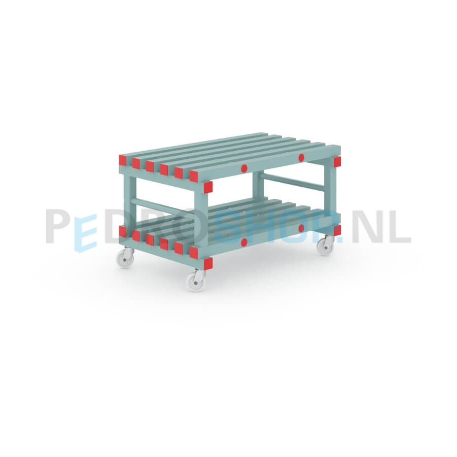 Kunststof stelling: 58cm (h) x 60cm (d) x 100cm (l)