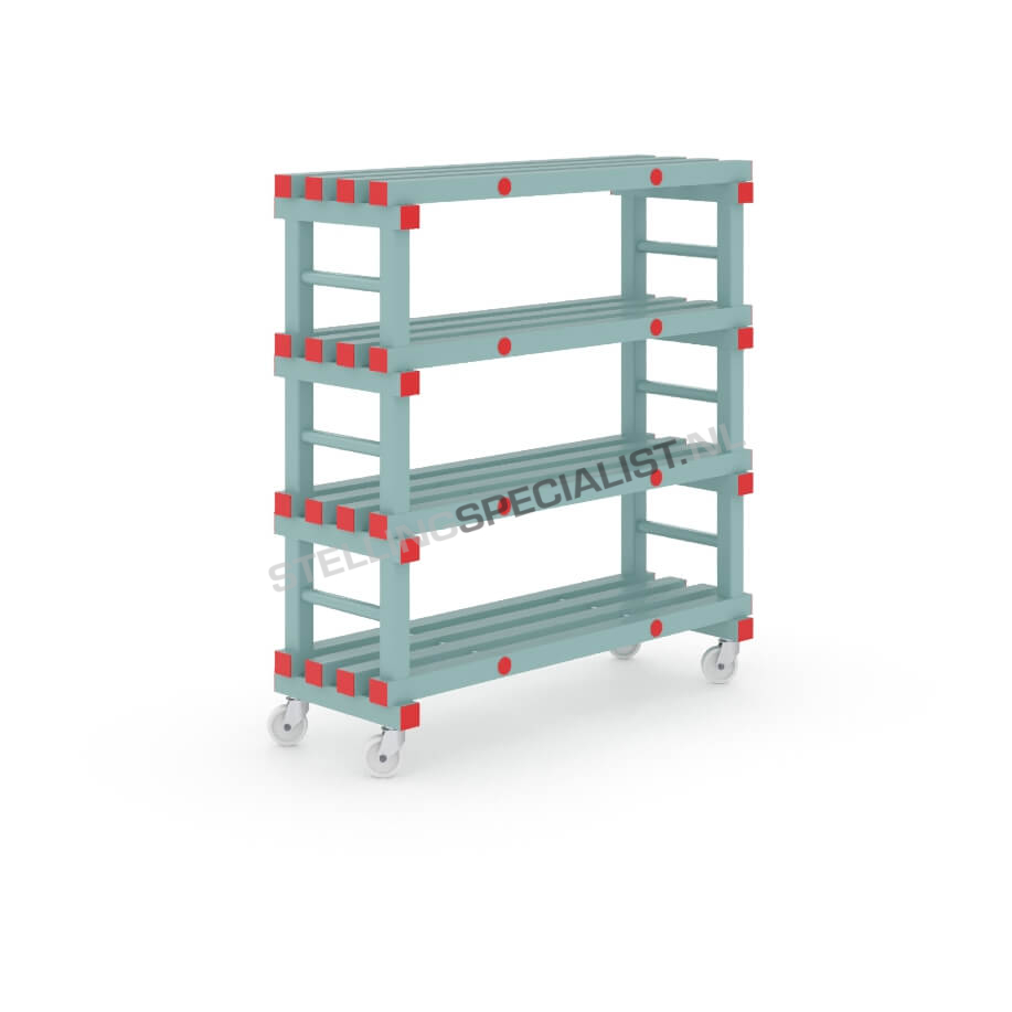 Kunststof stelling: 128cm (h) x 40cm (d) x 120cm (l)