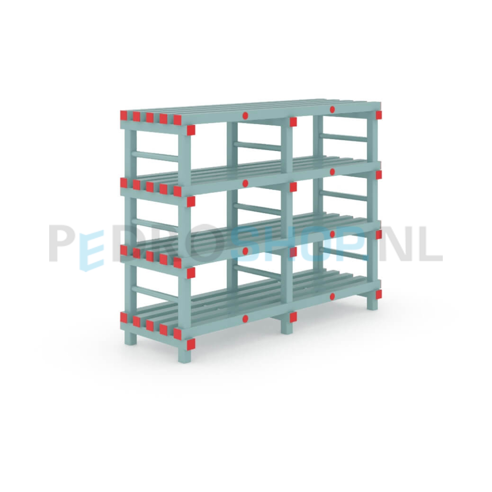 Kunststof stelling: 122cm (h) x 50cm (d) x 160cm (l)