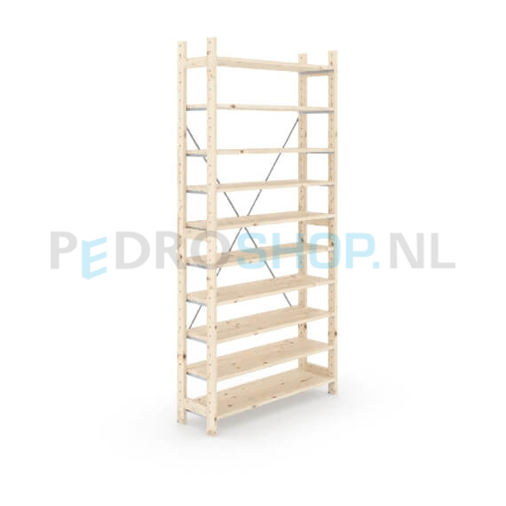 Eigen label houten stellingkast, dus goedkoop, flexibel en snel leverbaar! De onderdelen van de houten stellingen van ons eigen label zijn gemaakt van eersteklas Oost-Europees vurenhout en garanderen daarom jarenlang gebruiksgemak. Met de houten legbordstellingen en houten rekken kunt u uw magazijn eindeloos aanpassen, herinrichten en uitbreiden. U kiest voor betaalbare houten rekken, flexibiliteit met een goede kwaliteit! De houten stellingkast kunt u via onze handige configurator in een aantal stappen online samenstellen. Online uw houten stellingkast bestellen is nog nooit zo makkelijk geweest. Heeft u een groot archief in te richten met houten stellingen? Wij maken graag een passende offerte. Houten stelling kopen? Dan bent u bij ons aan het juiste adres.