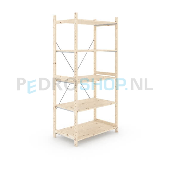 Eigen label houten stellingkast, dus goedkoop, flexibel en snel leverbaar! De onderdelen van de houten stellingen van ons eigen label zijn gemaakt van eersteklas Oost-Europees vurenhout en garanderen daarom jarenlang gebruiksgemak. Met de houten legbordstellingen en houten rekken kunt u uw magazijn eindeloos aanpassen, herinrichten en uitbreiden. U kiest voor betaalbare houten rekken, flexibiliteit met een goede kwaliteit! De houten stellingkast kunt u via onze handige configurator in een aantal stappen online samenstellen. Online uw houten stellingkast bestellen is nog nooit zo makkelijk geweest. Heeft u een groot archief in te richten met houten stellingen? Wij maken graag een passende offerte. Houten stelling kopen? Dan bent u bij ons aan het juiste adres.