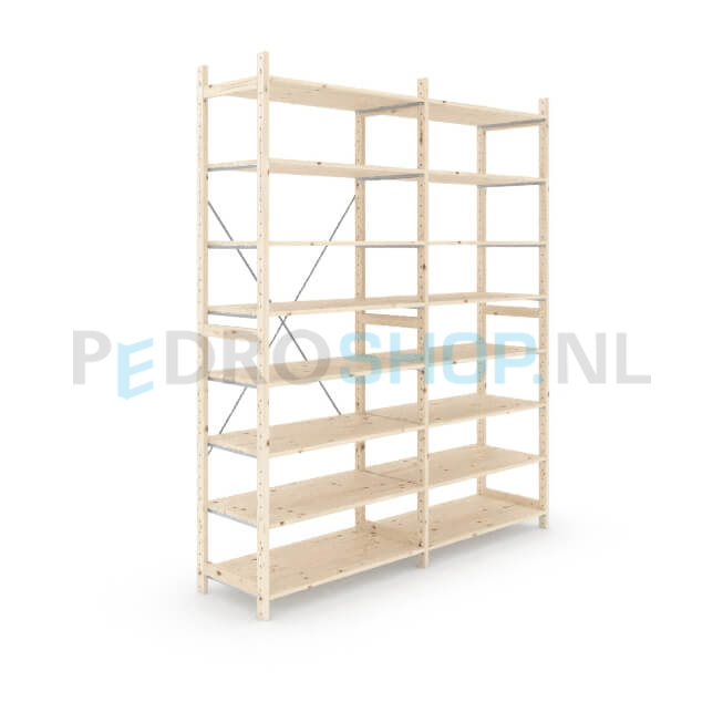 Houten stellingkast Easyrack: 240cm (h) x 50cm (d) x 203cm (l)